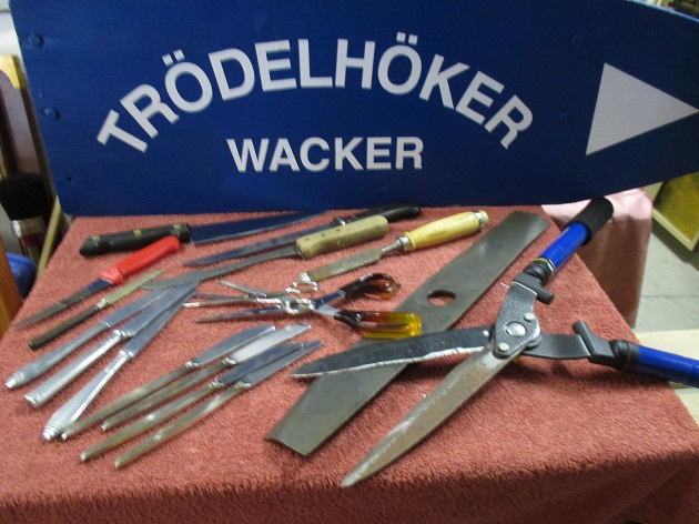 Zum nächsten verkaufsoffenen Sonntag, am 26. April von 12 – 17 Uhr, ist der Scherenschleifer Mario Adler wieder beim Trödelhöker in der Götzberger Straße 94 anzutreffen. Scheren, Messer, Besteckmesser, Stecheisen, Meißel oder Klingen für Rasenmäher gehören zu den Dingen, die der Scherenschleifer Adler schärfen kann. Nach über 20-jähriger Erfahrung in seinem Beruf arbeitet er direkt vor Ort, und das zu zivilen Preisen. Interessierte können also Ihre stumpfen Messer und Scheren gleich am Sonntag mitbringen – die Wartezeit könnte für einen Bummel beim Trödelhöker genutzt werden.