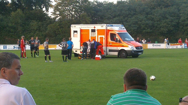In der Schlussphase dann der Höhepunkt des ‚Foulspiels‘. Ein Krankenwagen rollte auf den Platz.