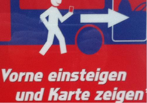 „Auch das ‚Nur-vorne-Einsteigen’ und ‚Nur-hinten-Aussteigen’ ist in vielen Situationen untragbar! Vorige Woche stieg ich in den schon rappelvollen, mit Schulkindern besetzten Bus (vorne) ein und kam gerade mal zwei Schritte vorwärts. An einen Sitzplatz war gar nicht mal zu denken. Angekommen in „Ulzburg-Süd“, kam dann aber der Skandal …